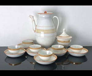 Antiek Koffieservies met Koffiekan+6 Kommetjes & Schoteltjes + Suikerpot (14 stuks) - Keramiek