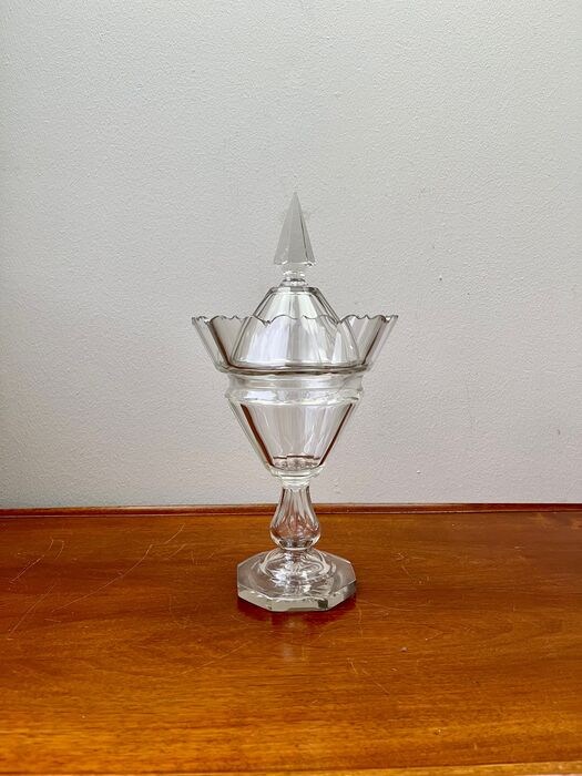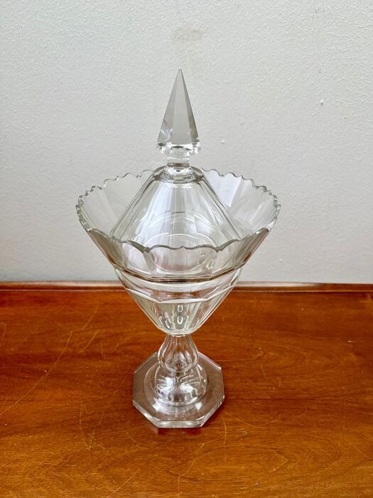 Facetgeslepen kristallen 19e eeuwse Biedermeier gembercoupe met originele deksel.
