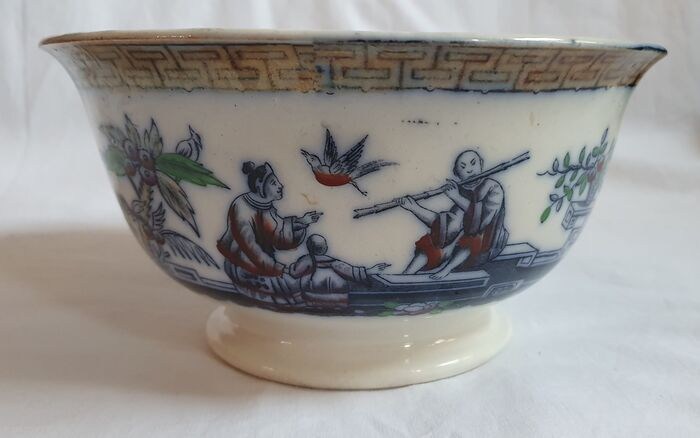 Schadevrije kom uit Engeland van W.J. Harding decor Chinese in transferware.