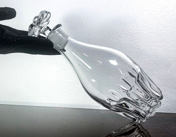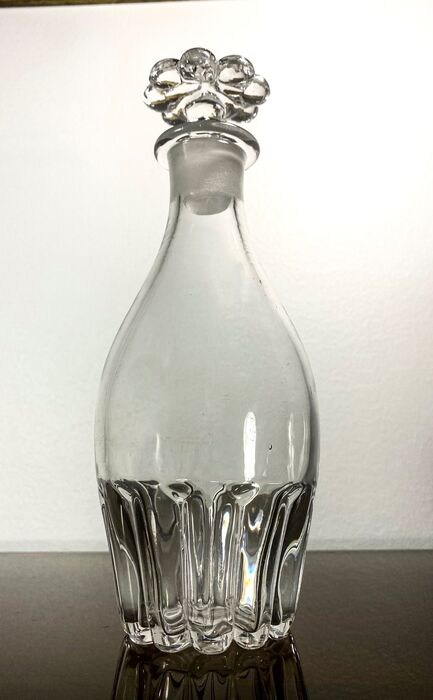 Drankkaraf van Le Creusot/Baccarat & St.Louis kristal in m. “Moulé À Grosses Côtés” en vermeld in cat. Le Creusot 1840. De karaf is niet gesigneerd (productie vóór 1936). In uitstekende staat, heeft lichte gebruikssporen.