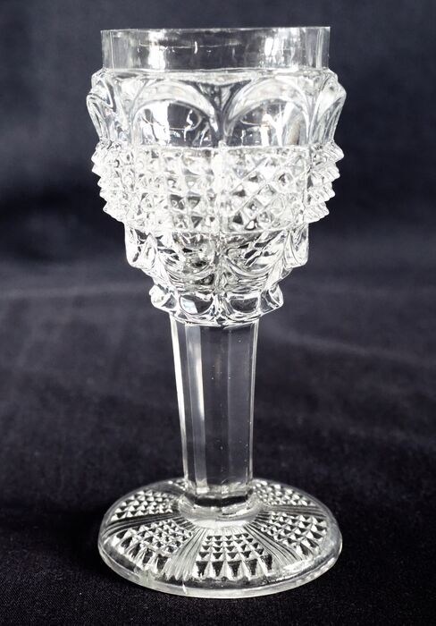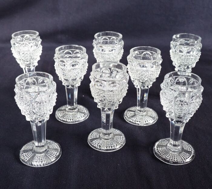 Set van 8 likeurglazen in Le Creusot-kristal, Charles X-periode.