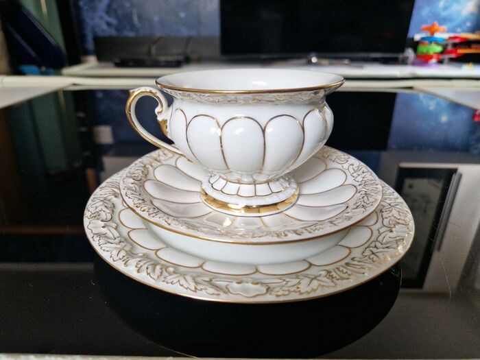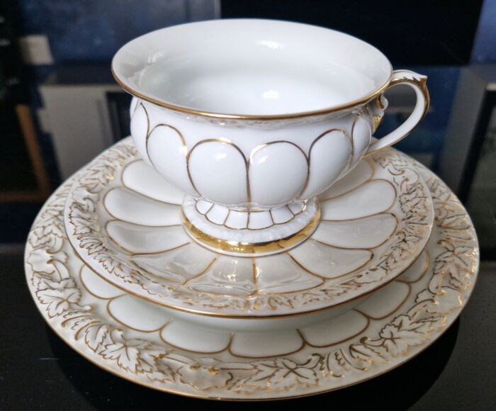 Te koop een 3-delig koffieservies van Fa Meissen in goede staat met goud