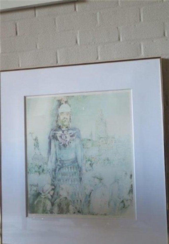 Van deze Roeselaarse artiest is dit ex. 53/190 – H 86 + B 79,5 + D 2,5 – goudkleurige metalen omlijsting met passe-partout