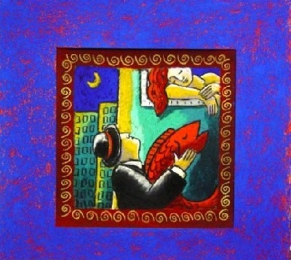 Jacques Tange (1960) studeerde in Rotterdam aan de Academie voor Beeldende Kunsten. Hij werd geïnspireerd door middeleeuwse schriften. Deze combineerde hij met het heden en hedendaagse humor. Zijn werken laten ons binnen in een normaliter gesloten wereld, een wereld van geheimzinnige sensualiteit. De kleuren die hij gebruikt creëren een intieme sfeer en daarbij zien we vaak een vrouw die zich in haar kleding probeert te verhullen, maar tevens zichzelf wil onthullen.