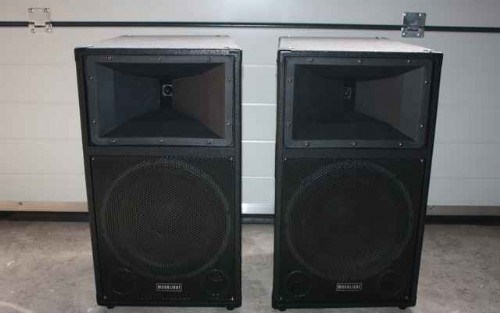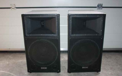 1x PA boxen set 600W, set van 2x 12 inch pa boxen van 600W, afm ca 63 x 34 x 34 cm.