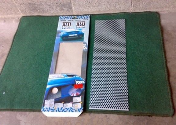 Aluminium gaas, nieuw en nog in verpakking, topkwaliteit van FoliaTec (oxydatievrij behandeld en lakken mogelijk): 20x62,5 cm met ronde gaten 7 mm.