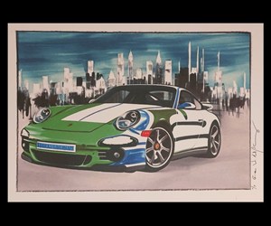 Afbeelding/illustratie - Porsche 911, Original painting, Gerald Baes - Porsche - Na 2000