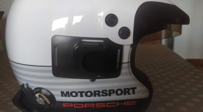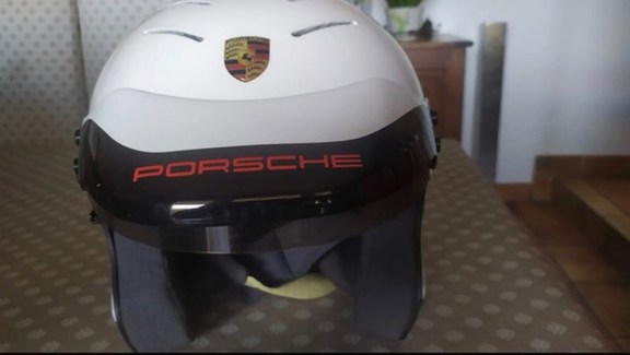 FIA: J8034 gehomologeerd in 2002/ carbon schaal, absorberende kap, vizier/ in zeer goede staat hoewel gedragen in wedstrijdmaat 61 (7 5/8)
