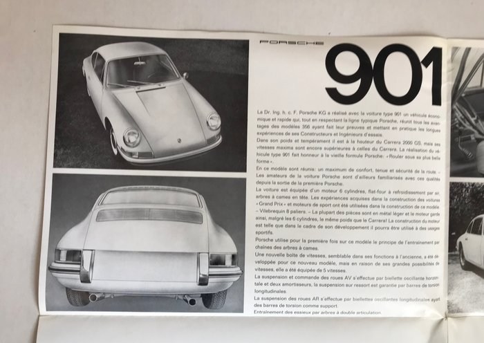 Verkoopbrochure Porsche 901 "in folio" in het Frans, 8 pagina's in kleur, artikel W 221 f vanaf 9.63. Bijna perfect.