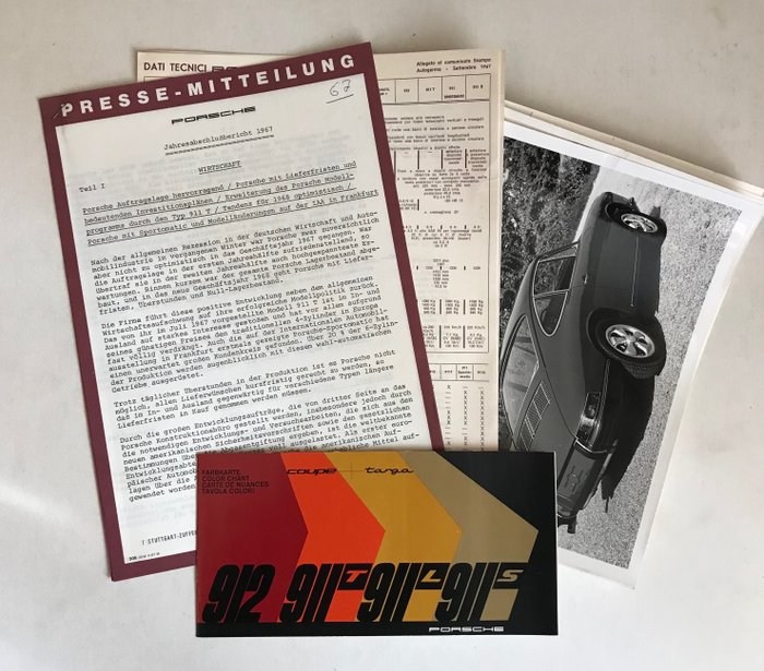 Porsche 1968 (9/67) Bereik in het Italiaans (vrij zeldzaam in het Italiaans). Technische fiche, persmap, onderschrift bij 8 foto's.