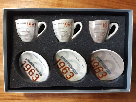 Porsche bracht in 2013 deze set espressokopjes uit ter ere van het 50 jaar bestaan van het 911 model.