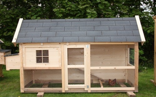 Handgemaakt kippenhok "Bea" afgewerkt met dakshingles, ongeschilderd met nachthok aan de linkerzijde, breed 2.5 x diep 1m x hoog 1.50 cm € 630,-