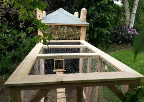 Het dak van het kippen ren is afneembaar, zodat u er eventueel rechtop in kunt staan. Wij kunnen