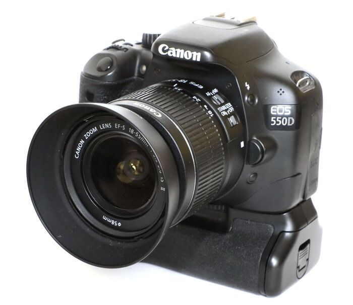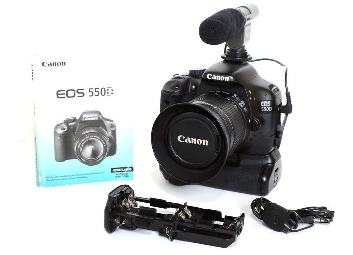 Deze zeer fraaie Canon EOS 550d met Canon batterijhouder BP-550D en Canon EF-s 18-55mm IS (beeldstabilisatie.)
