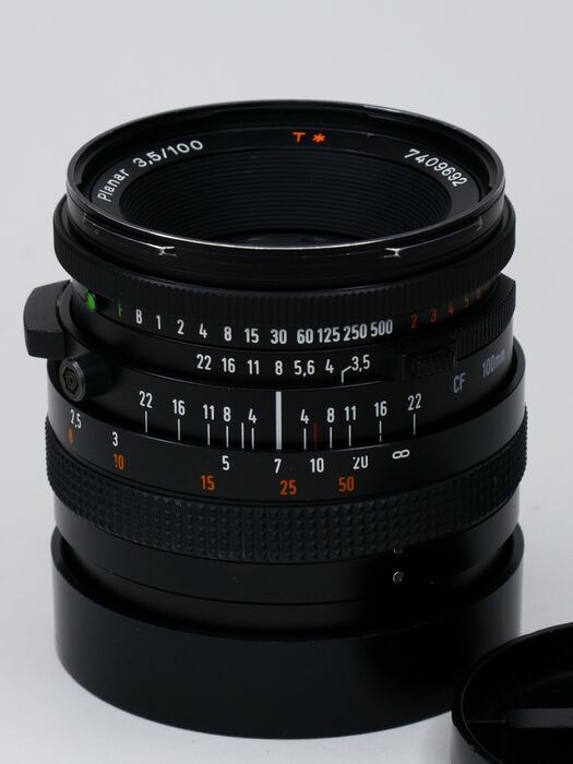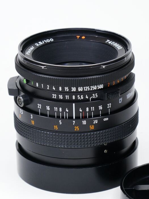Hasselblad Carl Zeiss Planar 100mm F/3.5 T* portret objectief in zeer goede staat. Het is een van de beste objectieven ooit gemaakt voor Hasselblad. Met dit objectief is nog lang plezier te beleven. Het objectief is schoon, geen vuil, geen schimmel of krassen. De focusring draait soepel. Sluiter en diaframa werken zoals het hoort.