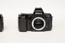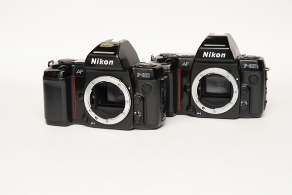 Nikon F801 en 801S. Beide body zijn defect. Er is contact, het LCD-scherm werkt maar er kunnen geen instellingen aangepast worden.Van beide toestellen zijn de batterijcompartimenten niet gebroken en er zijn geen sporen van uitgelopen batterijen.