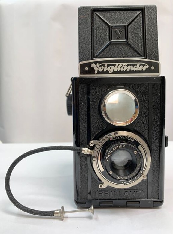 In zeer goede staat zijnde pseudo TLR camera geproduceerd door Voightländer in Braunschweig, West-Duitsland in 1937. De Brillant werd onder andere door de bekende Hongaars-Nederlandse fotograaf Eva Besnyö gebruikt in haar eerste werken.