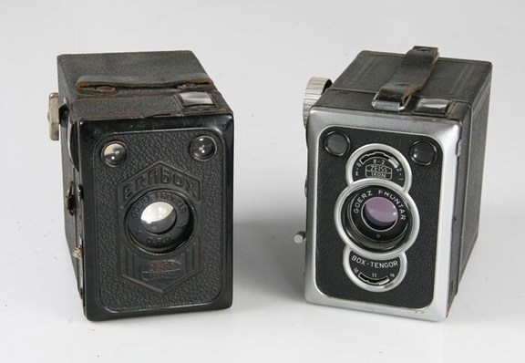 Twee populaire boxcamera's in nette staat. In de Erabox zit zelfs nog film!