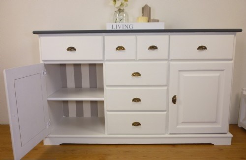 Wij kregen verschillende verzoeken om wat landelijke Dressoirs in Warm wit, (9010) te restylen.