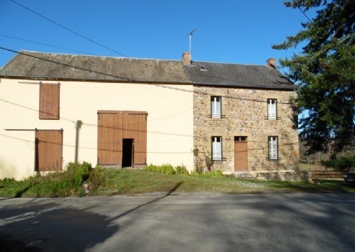 Rustig maar goed bereikbaar gelegen huis. Op 150mtr van een plan d’eau waar gezwommen en gevist kan worden. Op 2 km afstand dorpje met superette, brood depot en hotel-restaurant. Op de begane grond bevinden zich een keukenruimte, een woonkamer, een WC en een ruimte die als kantoor dient. Op de etage 3 kamers, een badkamer en een WC. Een grote kelder onder het hele huis met een warm water boiler en aansluiting voor wasmachine. De aangrenzende schuur staat op een souterrain (vloeroppervlak ongeveer 65m²) en bestaat uit een grote ruimte (ook 65m²) met voor de helft een verdieping en heeft genoeg hoogte voor minimaal nog 1 verdieping. Aan de achterkant een tuin (490m²). Het huis is niet erg groot (ongeveer 60m² bewoonbaar oppervlak) maar het is perfect mogelijk om (een stuk van) de schuur er bij te trekken.