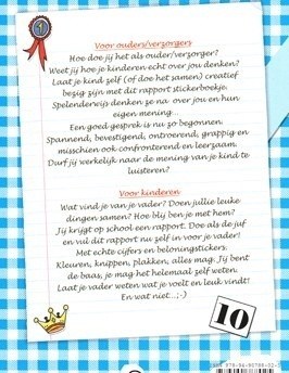 Wat vind je van je moeder? Doen jullie leuke dingen samen? Hoe blij ben je met haar? Jij krijgt op school een rapport. Doe als de juf en vul dit rapport nu zelf in voor je moeder! Met echte cijfers en beloningstickers. Kleuren, knippen, plakken, alles mag. Jij bent de baas, je mag het helemaal zelf weten. Laat je moeder weten wat je voelt en leuk vindt! En wat niet....
