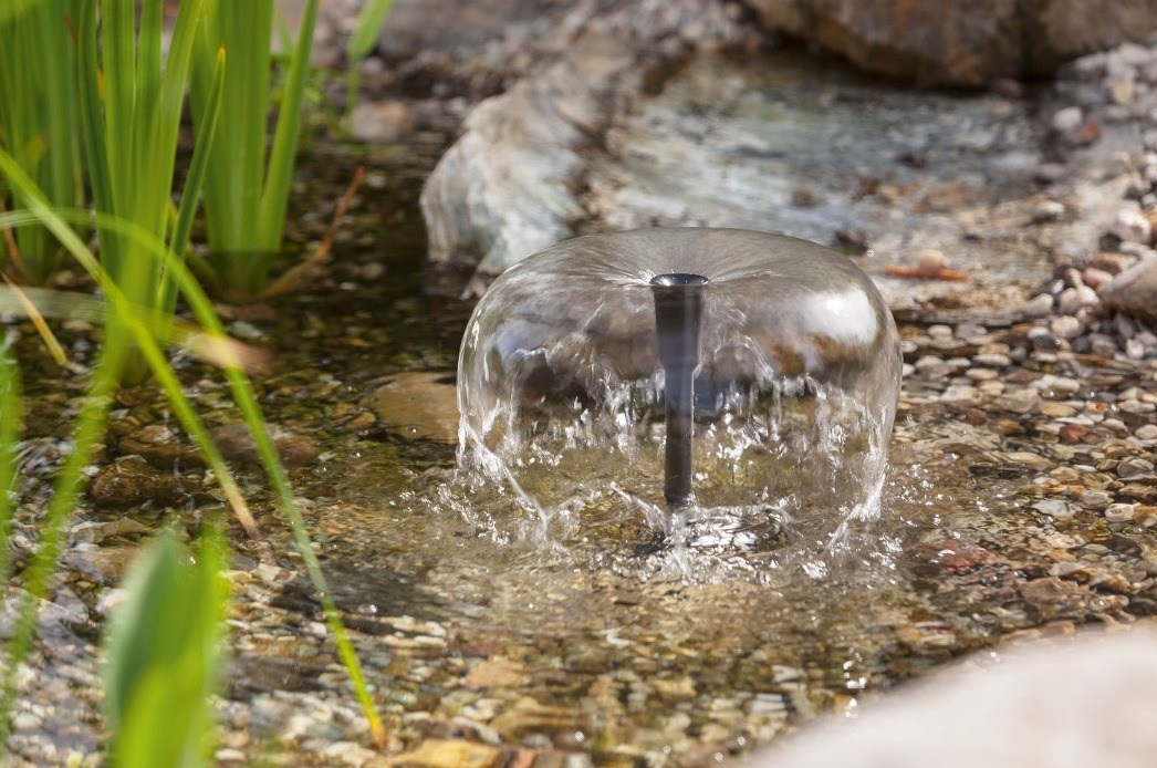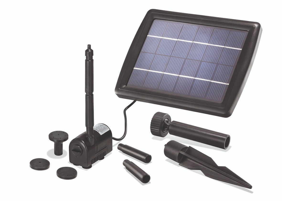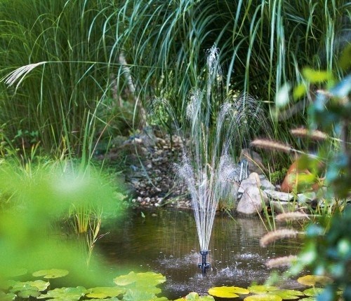 Benut de kracht van de zon en produceer een fontein of waterkolom. Desgewenst voedt u via de slangaansluiting een waterspuwend beeldje of een kleine beekloop. Het systeem kan eenvoudig worden geïnstalleerd.