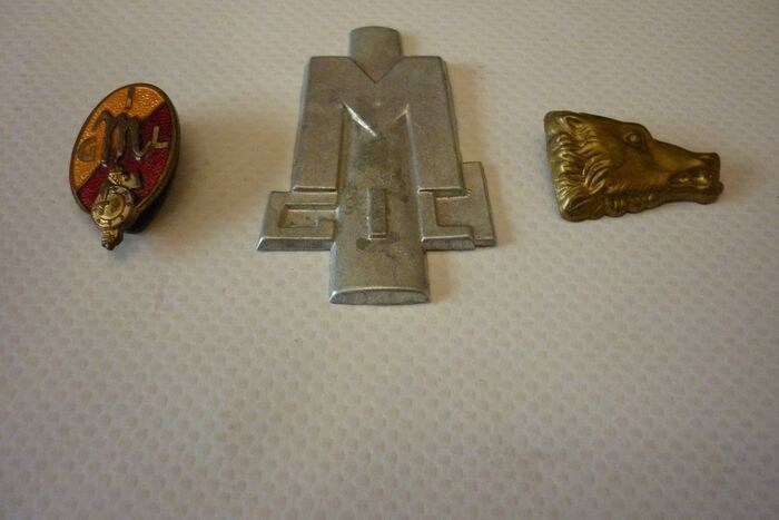 Kavel bestaande uit 3 originele badges van de Nationale Fascistische Partij, Italiaanse Jeugd van de Littorio: