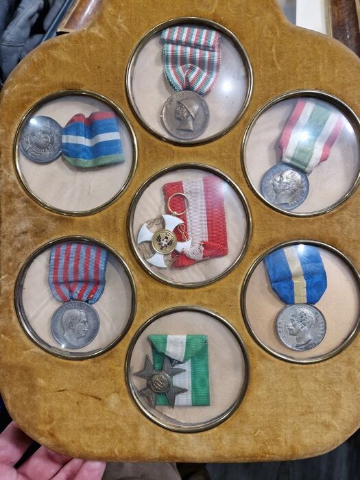 De medaillecollectie bevat 7 decoraties, elk met hun originele en goed bewaard gebleven lint, gerelateerd aan koning Umberto I en koning Vittorio Emanuele III