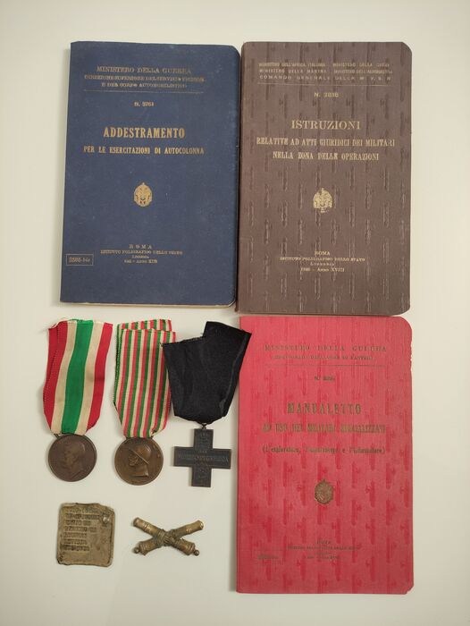 - "Ministerie van Italiaans Afrika-Algemeen Commando van de MVSN" de "Instructies met betrekking tot rechtshandelingen van het leger in het operatiegebied" -prijs £5- gedrukt door het Istituto Poligrafico dello Stato in het jaar XVIII (1940). Bruine stoffen hoes, opstaande randen;