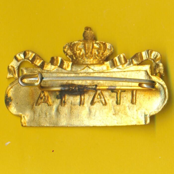 Kavel zoals afgebeeld op de foto, ongebruikelijke badge in verguld metaal en Savoy blauw email, intact email met lichte rek. Meet 4,5 cm lang.