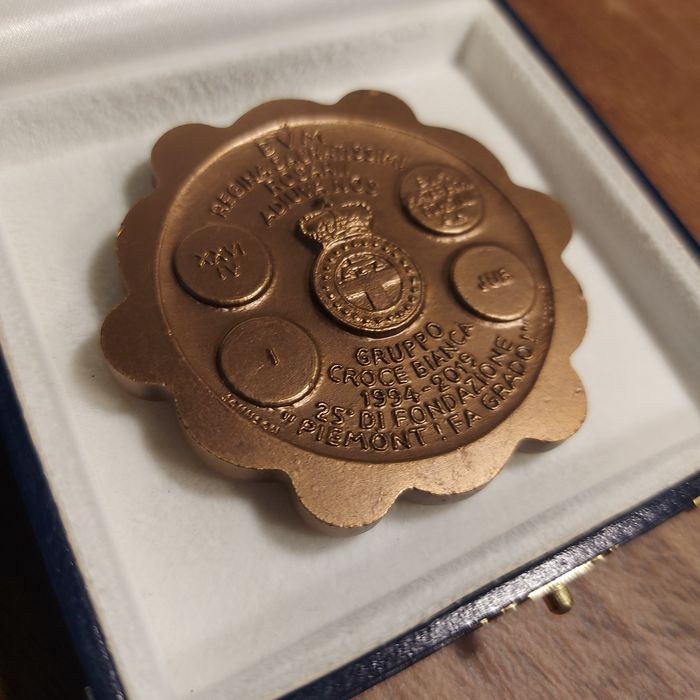 De eigenaardigheid van de medaille wordt gegeven door de verrassende resolutie van de details en de opmerkelijke afmetingen, 6cm x 6cm.