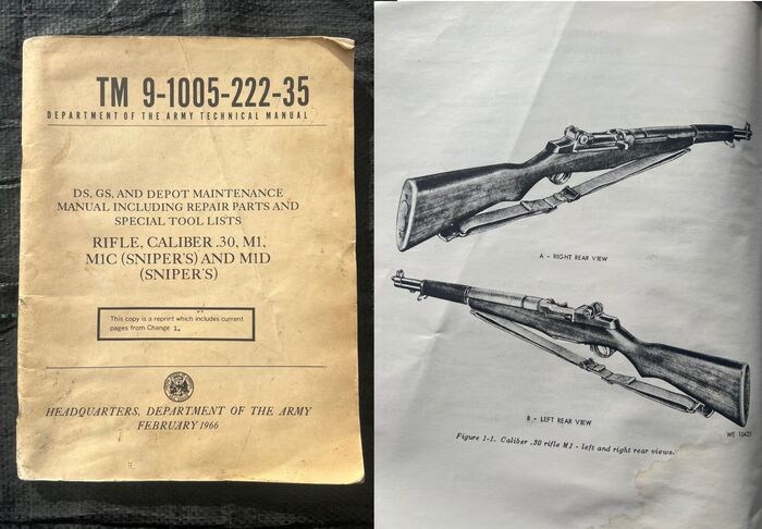 Rare U.S.A official army manual for SPECIFICALLY the infamous M1 Garand Rifle. Over 70!!! pages of very interesting information and abundant photo's and plates; maintenance, use, ammunition, parts, draWings and many photo's. Even though the manual is dated 1966, the models are identical to those used during WW2, and this manual would be highly useful for any M1 garand enthousiast, This is a much larger size compared to the other manuals, approx >A4 size.