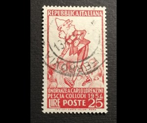 Italiaanse Republiek 1954 - Honours to Carlo Lorenzini (Collodi) Pinocchio with white background - Sassone n. 746a