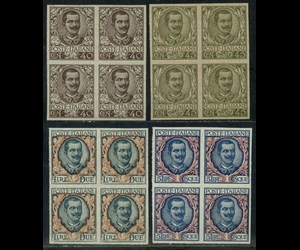 Koninkrijk Italië - Floreale, 4 print proofs on grey paper, in block of four.
